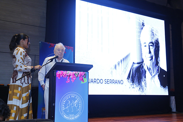 La Fundación BAT Colombia otorgó el Premio de Honor Gloria Triana a Eduardo Serrano Rueda en reconocimiento a su trayectoria y a su aporte fundamental al desarrollo del arte colombiano como historiador, curador, gestor y crítico de arte contemporáneo, con un trabajo ininterrumpido durante las últimas cinco décadas que ha contribuido al desarrollo, proyección internacional e identidad de la plástica nacional.
